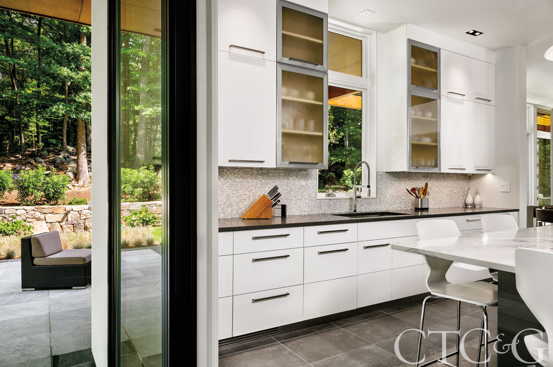 “The homeowners were drawn to the Poggenpohl display in our showroom,” Najmy continues. “They were able to see how the glossy white cabinets reflect the light and architecture that surrounds them. At times, it’s as if they are a background element constantly changing as the light changes throughout the day.”