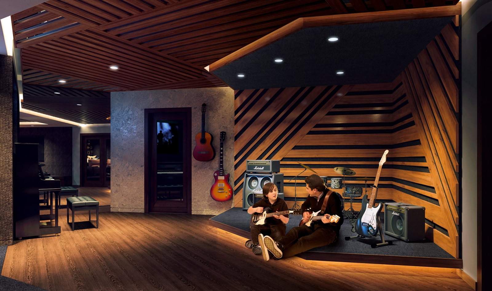 Two Fifty West 81st, a new condominium on the Upper West Side, features a recording studio designed by Robert A.M. Stern Architects and Altmann Productions. This studio offers residents the state-of-the-art technology found in a professional recording studio, with electric baby grand, Tama drum set, Epiphone acoustic guitar, Behringer soundboard, sound booth, and a designated space to arrange, compose and mix. The developer, who performs in a rock band on weekends, took the lead on creating his dream music studio, inspired by the rich musical history of the Upper West Side.