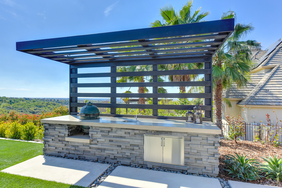 By making the barbecue area different from the rest of the backyard, Peddicord was really able to take the design to the next level. “I was trying to keep things simple, modern, and clean,” he says. “But you still want a visual impact. You create that by complementing or contrasting materials.”