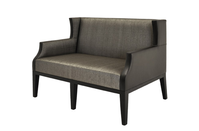 Christian Liaigre Caraibes Banquette. As a new offering in the Caraibes collection, this banquette is shown with a durable leather exterior complimented by a velvet interior and seat cushion. Decorative seaming elongates the arm panels while the dual textures feature versatility in the design of your seating. The banquette offers throw pillows for additional comfort and the base is available in Oak. Christian Liaigre I 212.201.2338 I christian-liaigre.us.