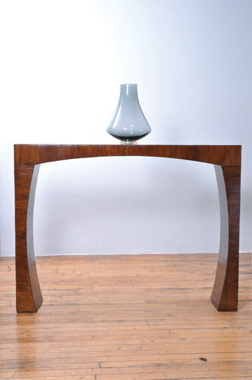 SINOTIQUE “Arch” console by Jan Lee for Sinotique, in antique bamboo veneer, custom sizing and stain available. 36.5” h x 8.75” d x 48” l. Priced at $1,800 (as shown.) Sinotique I 212.587.2393 I sinotique.com