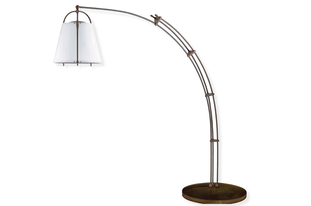 Italian lighting designer, Aldo Bernardi, brings the indoorsΩoutside, with Elicriso, a moveable, large-scale, aged brass floor lamp with all-weather shade. Approximately 92.5” h x 102” d.