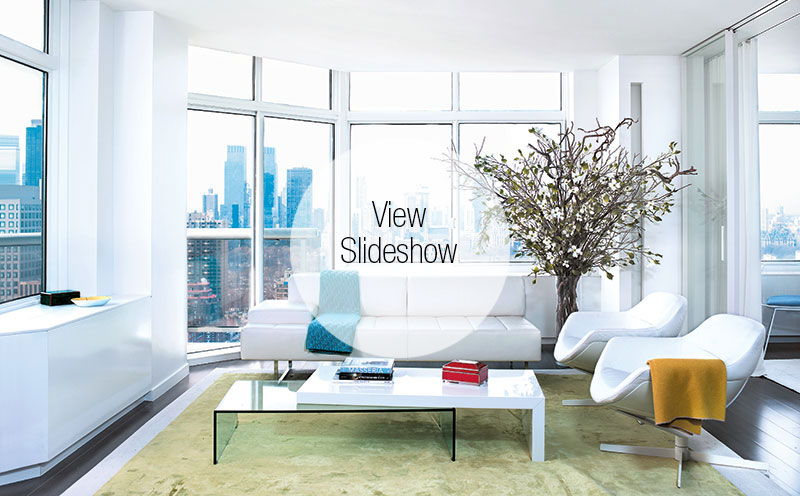 Thirty-three floors above Third Avenue on the Upper East Side, a door opens into an extraordinary space, a dramatic synthesis of light and air, low white furnishings, and carefully curated colorful accents. If not for the wraparound views that anchor the 1,400-square-foot two-bedroom to Manhattan, with the East Side and Central Park spread out like a Lego kingdom below, a first-time visitor might almost feel as if he were in a spaceship, or on a cloud.