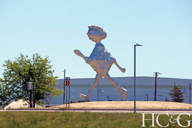 Another tall drink of water has strolled into our area. The Walking Figure, a 30-foot-high aluminum sculpture of a woman, is spurring debate at Francis S. Gabreski Airport in Westhampton Beach. Rechler Equity Partners, which is creating a Hamptons Business District on vacant county-owned land there, put up the 5,000-pound sculpture in early June, decreeing that it will be “another piece of iconic artwork added to the landscape of the East End.”