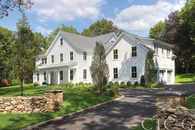 A newly constructed Westport home has at its heart a handsome, open-plan kitchen with a generous, Calacatta marble-top island for cozy family dinners and Sub-Zero and Wolf appliances. The adjoining butler’s pantry, which actually serves as a second kitchen, is equipped with a full-sized sink, dishwasher and wine fridge—perfect for when you are entertaining and need the extra space. Also adjacent is a family dining area and a wall of glass doors that step out onto the back terrace. The 8,100-square-foot “modern farmhouse,” designed by Sabin Builders, has six bedrooms and five bathrooms (plus two half bathrooms), including a master suite with a marble bathroom and chic slipper tub. Leslie Smith Clarke of Leslie Clarke Homes, affiliated with William Raveis, lists the property for $2,795,000.