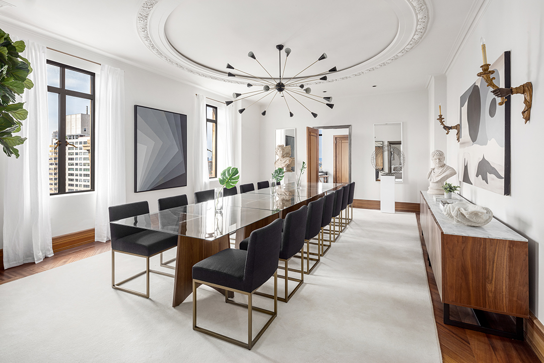 Just two years ago, actress Demi Moore parted ways with her majestic San Remo penthouse for $45 million and now the triplex gem is back on the market asking $50 million. With 8,000-square-feet of living space and 1,500-square-feet of terraces, this is no doubt one of Manhattan’s most spectacular properties for sale, especially since it is the cherry on top of one of architect Emory Roth’s most iconic buildings.Shining atop the South Tower of the San Remo, this incredible spread with unparalleled views is what dreams are made of. With 50-feet of Central Park frontage, it’s a place where you can watch the seasons change in style and fall in love with the city all over again each day. A perfect blend of Old New York glamour and sleek modern style, the home is brimming with captivating elements like a grand curved staircase, 36-foot wood-paneled living room, and huge windows that let in ample sunlight and paint the rooms gold at sunset.Besides offering stylish living spaces, six bedrooms, and five and a half baths, the sky-high mansion has unrivaled celebrity pedigree. The building has been home to Steven Spielberg, Steve Martin and Diane Keaton, whose former apartment there is actually currently for sale as well.The San Remo’s influential owners aren’t all in the past either. The new owner with deep pockets will be in good company since just across the way in the North Tower sits a sister penthouse that belongs to legendary musician Bono. According to Mansion Global, the savvy rocker snagged it from Steve Jobs back in 2003 for just $14.5 million.J. Roger Erikson of Douglas Elliman has the prestigious listing.