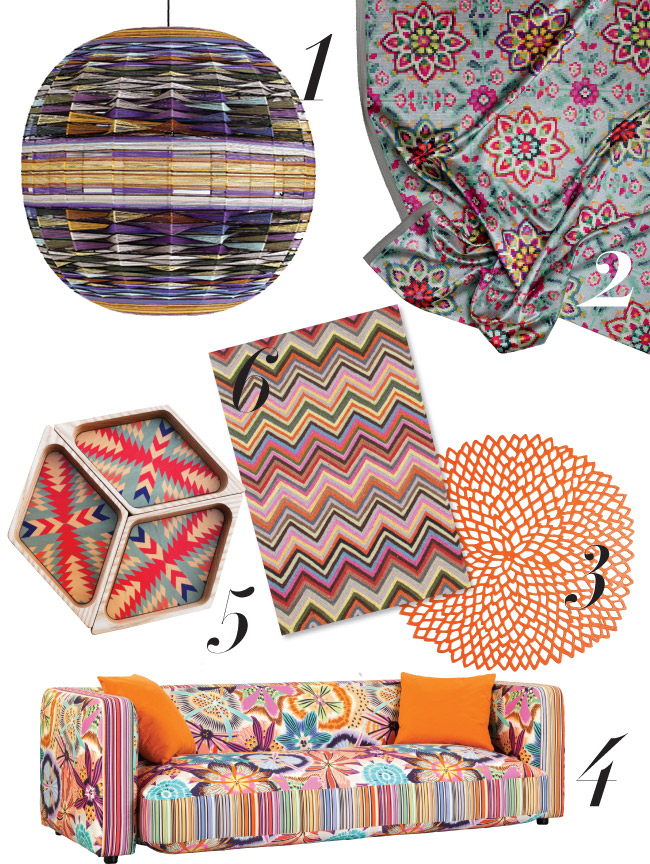 1. Consider the bold floral hues and structural folds of MissoniHome’s Thea Kuta lamp, constructed from painted steel and meticulously hand-woven with a rainbow’s worth of colorful woolen thread. It’s a different way of looking at the globe altogether. $4,520, at MissoniHome at DDC, 181 Madison Ave., NYC, 212-685-0800.