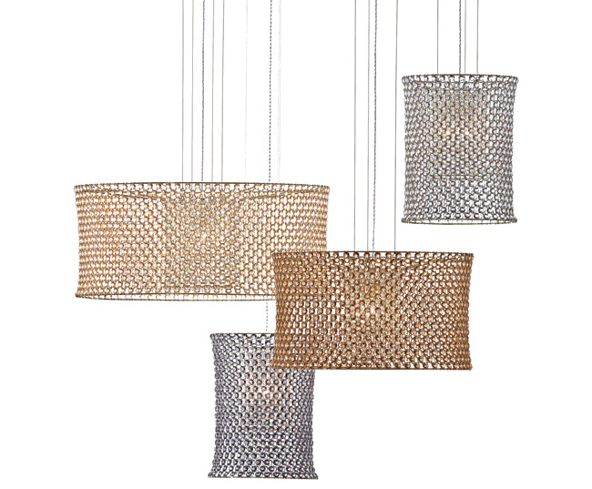 Italian designers Ivan Lolli and Mario Memmoli have studded their “Aires” hanging fixtures with crystals, making them shimmer that much more. Available in a range of colors and sizes, from $9,000 to $27,000, at Atelier Courbet, 177 Mott St., NYC, 212-226-7378.