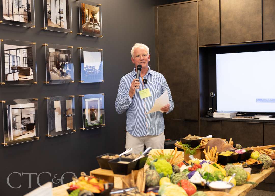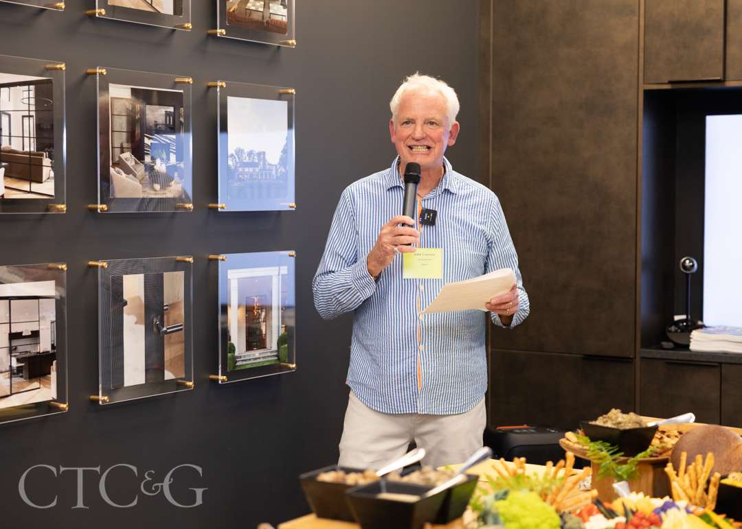 On May 14, All the Details hosted an engaging Design Salon Soirée, moderated by CTC&G Editorial Director DJ Carey. The evening began with “tini” sips from the martini bar and light bites, catered by Marcia Selden Catering. John Coursen, co-owner of All the Details, welcomed attendees and introduced DJ, who offered a preview of the evening’s format. Guests then rotated between tables, connecting with designers, architects, and builders while discussing thought-provoking, design-driven prompts that sparked lively and imaginative conversation. The night concluded with a raffle for a complimentary entry to Connecticut’s Innovation in Design Awards (IDAs).