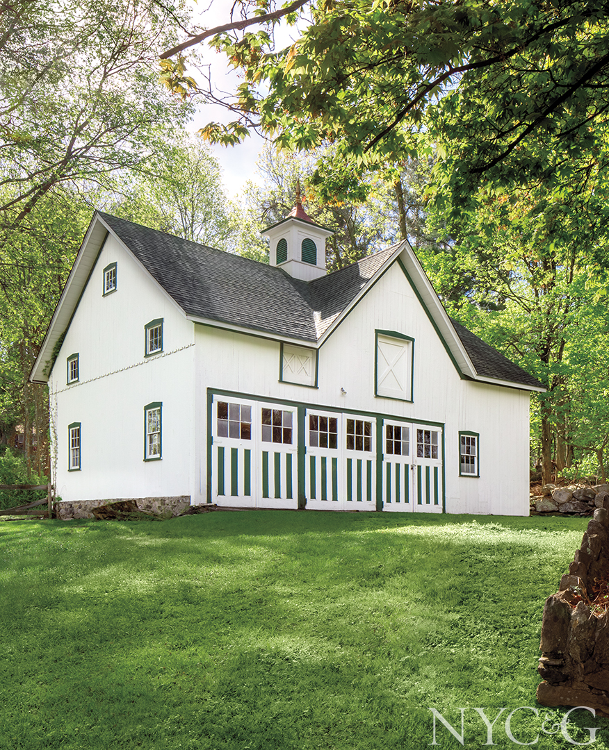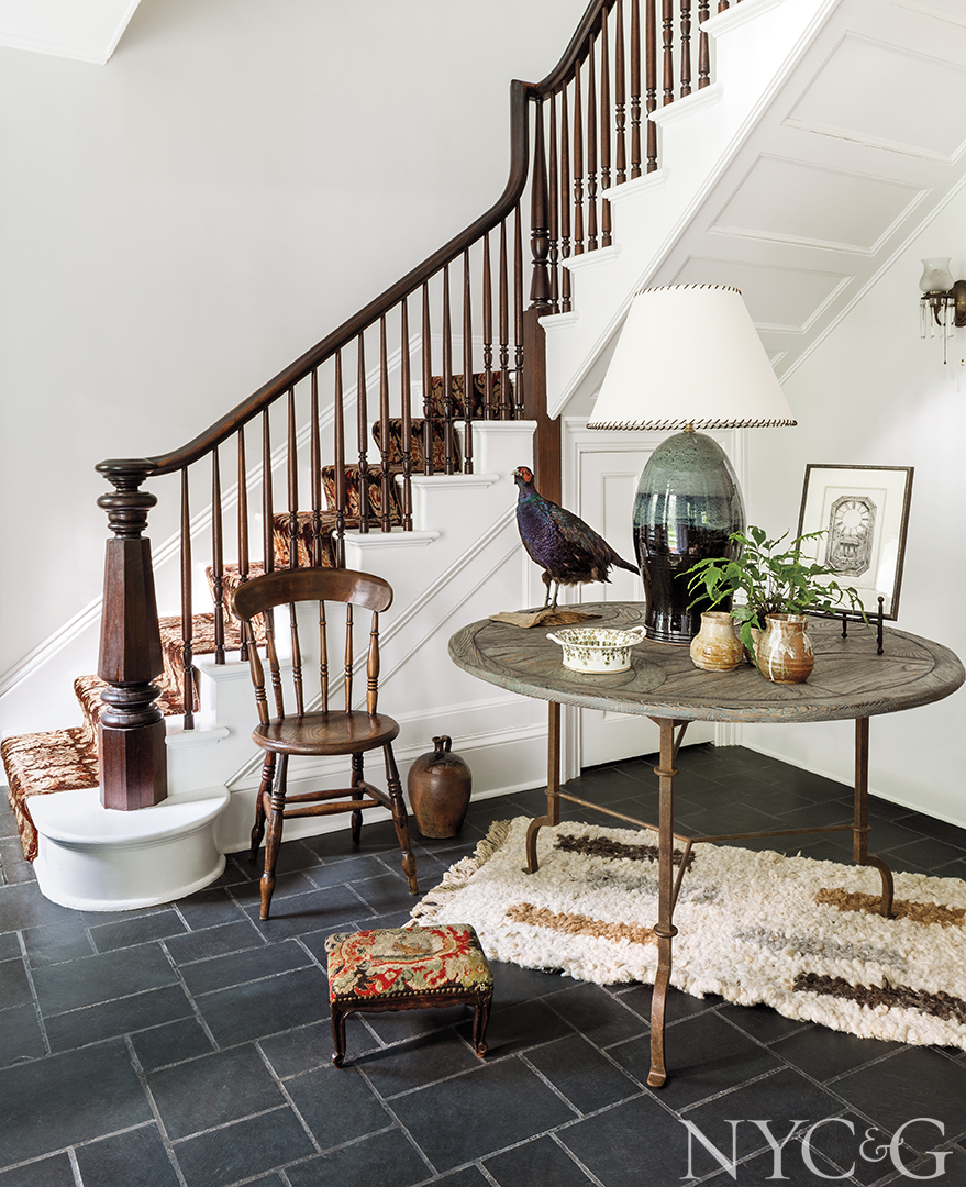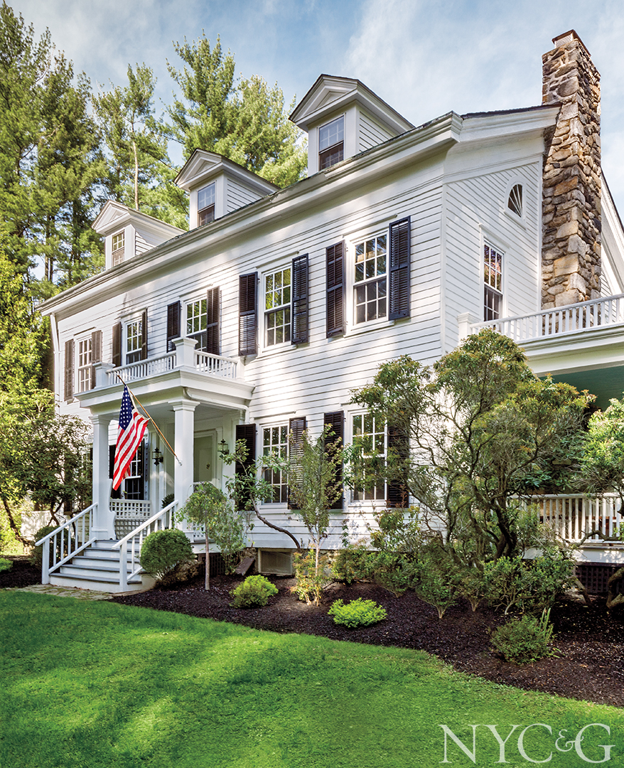 When Manhattan-based designer Ashley Darryl first set eyes on her 1864 Colonial-style weekend house, it had been languishing vacant for two years on a weed-ridden two-and-a-half-acre parcel in Carmel. Birds had nested in the exterior columns, porch steps were rotting, and mold covered the paint-chipped interior walls. “My first thought was, Wow, this is beautiful,” recalls the undaunted Darryl, who admired the home’s grand staircase, original marble fireplace, and horse barn. “And then I thought, Wow, this place needs a lot of work. But I could see its potential.”