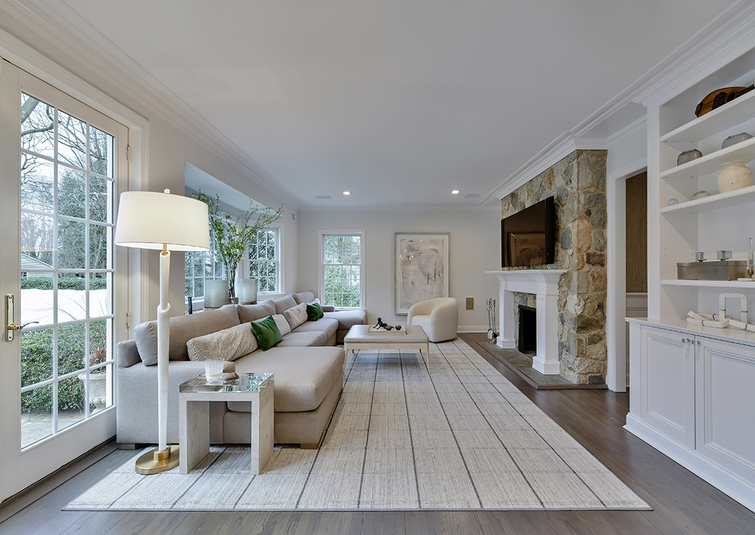 First and foremost, the renovation started with opening up the main floor. More space for people to move freely and more space for exciting design elements brought a world of new possibilities to this home. After restructuring the floor plan, Baltimore set out to infuse livable glamour into each room and foster a feeling of refined airiness.