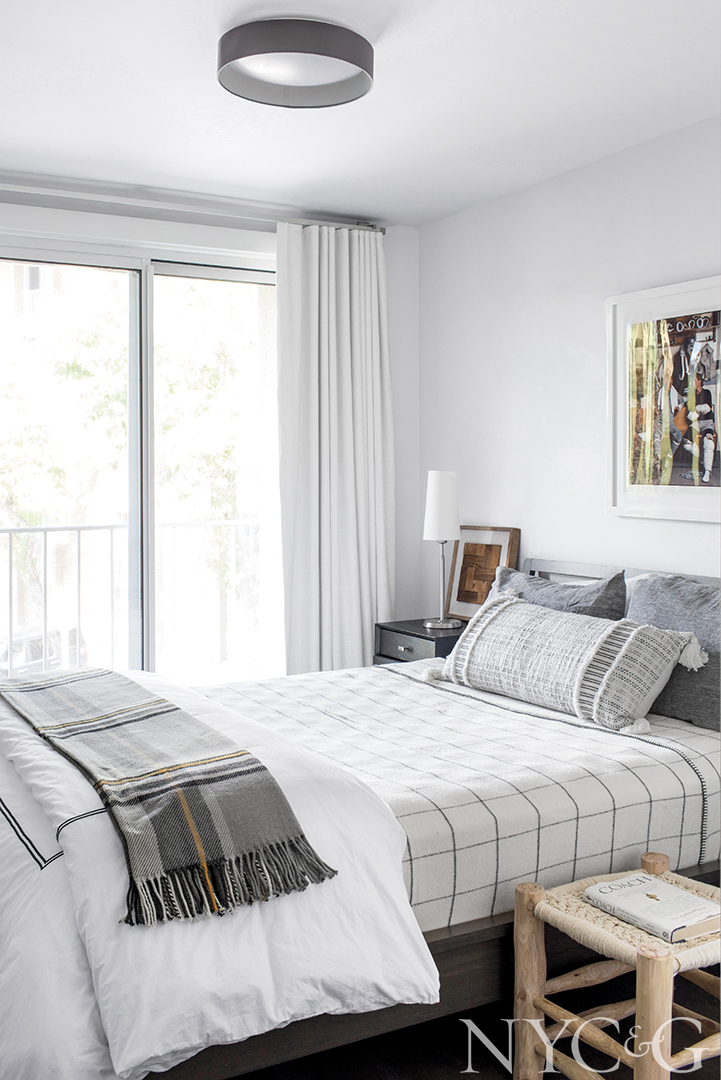 To make each of the co-op’s three 19-foot-wide floors seem airier, Tutun painted the walls Benjamin Moore Super White and hung large canvases and photographs. It was impossible to raise the eight-foot-high concrete ceilings, so standard-height doors were swapped out for taller seven-and-a-half-foot doors, which draw the eye up and elevate the space. “There were no easy fixes in this project,” reports Tutun, who launched her Rye-based firm in 2005. “I was challenged to think out of the box more than ever before.”