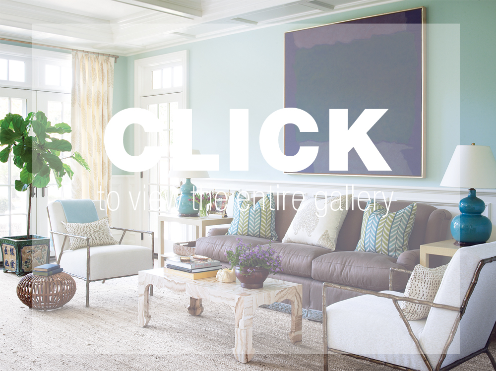 While still maintaining her vibrant color scheme, Braff dialed it back a bit in the private quarters, where she installed mint-green headboards in a guest room and a Tiffany blue paint from Benjamin Moore and a blue-and-cream linen from Lisa Fine Textiles in the master bedroom. The bedrooms are undeniably restful retreats, but more often than not, Braff’s clients and their guests find themselves congregating in the family room off the kitchen, which features a cheery mix of raffia on the walls, linen Lee Jofa curtains, and Christopher Spitzmiller lamps. “Daylight flows through this room nicely, making it a relaxing space to hang out in if you want to,” says the decorator. “But that’s what’s so great about the house. Everyone has his or her own corner, which makes it a place everyone wants to be in!”
