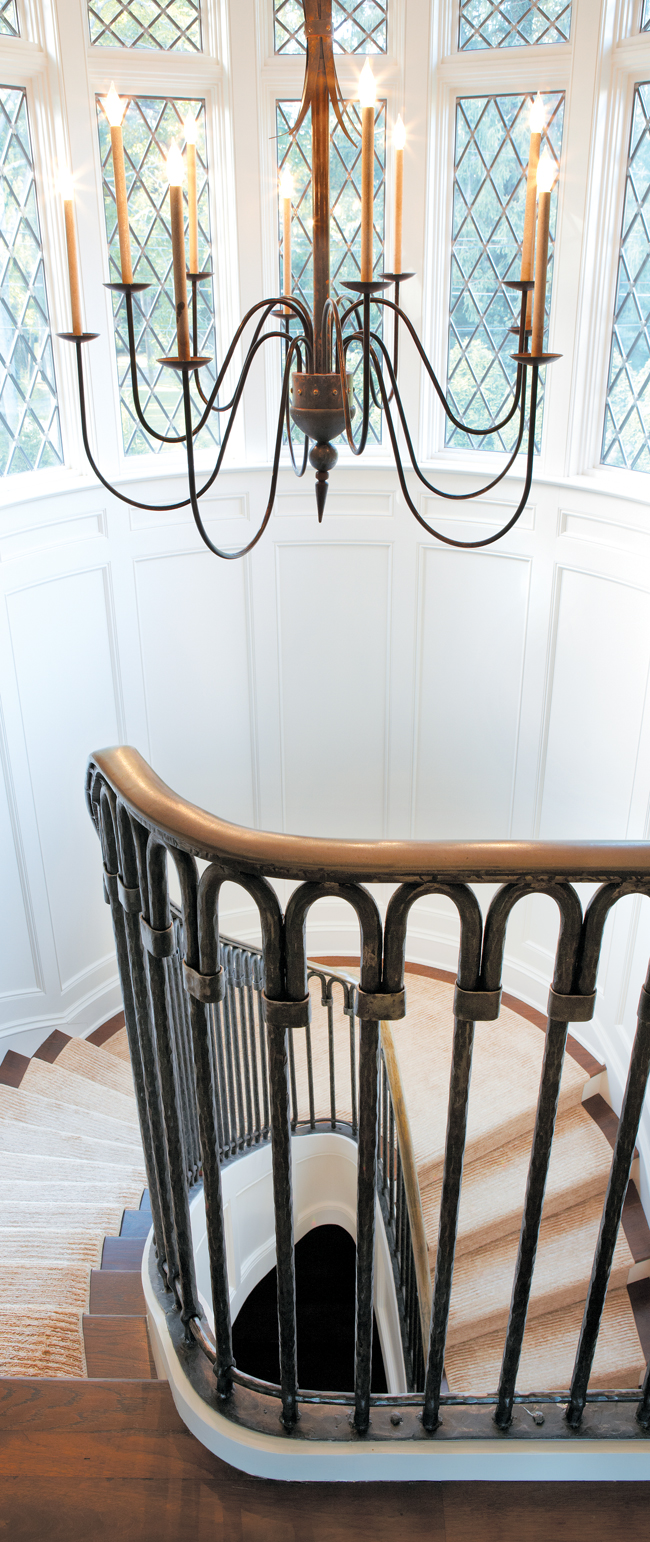 Bright Idea | The central staircase is flooded with natural light coming through diamond panes. Stair carpet is through JD Staron.