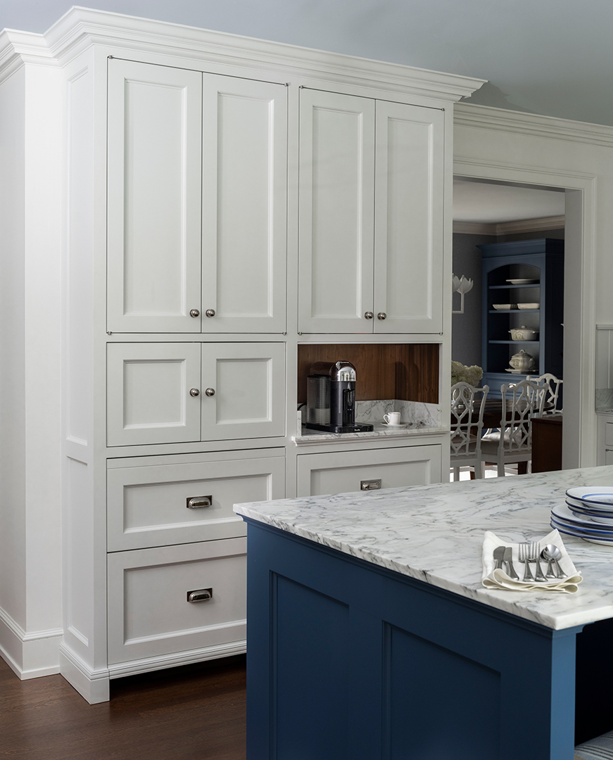 However, stepping inside, a renovation conducted in the 1990s had gone against the structure’s graceful, traditional aesthetic. The kitchen, dressed in knotty pine, was especially dark and clunky. Storage organization was impossible with no interior shelving and many appliances were not strategically placed, limiting counter space. The bottom line: It did not work for her clients, an active family of five. So, the designer, along with Joe Milicia of Hobart Construction, immediately got to work.
