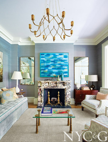 When renovating landmarked structures, Gambrel walks a line between period authenticity and a contemporary eye. He attempts to create the look of something old that is simultaneously modern. For this house, “we beefed up the millwork to make the rooms feel younger,” he says. “The style of the moldings is traditional, the scale is contemporary.” And while Victorian spaces would no doubt be colorful, chances are they would not have brightly painted and wallpapered ceilings of the kind the designer installed here.