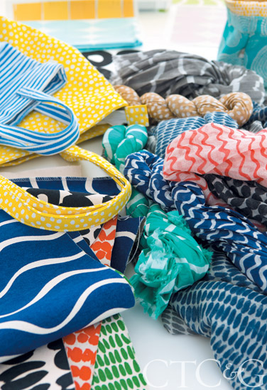 An assortment of Gorman’s patterns on samples, bags and scarves, produced under the label See Design.