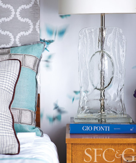 The living room and bedroom are testaments to the designer’s love of fabrics. The window treatments and bedding are the handiwork of Doreen Leong. “I am obsessed with the tiny details that tie it all together,” Hohla notes, referring to Leong’s dressmaker details. “I always advise not to skimp on the fabric selections. They add warmth and really set the tone and personality for your home.”