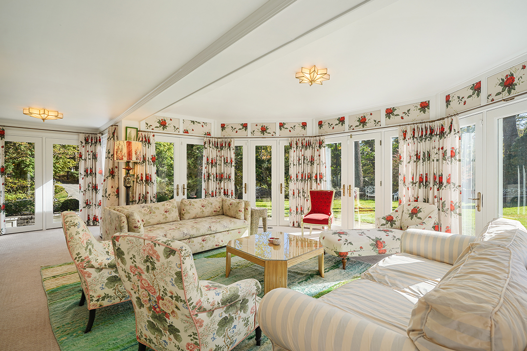 Whimsy appears in the form of floral wallpapers and eclectic artwork adorning rooms that feel inherently cozy. There are many idyllic spots where you can imagine curling up with a good book or sipping morning coffee, especially in front of one of the fireplaces or in the circular solarium. Emphasizing natural light was important to Barrymore, who now gets less of that (and nature) in the city.