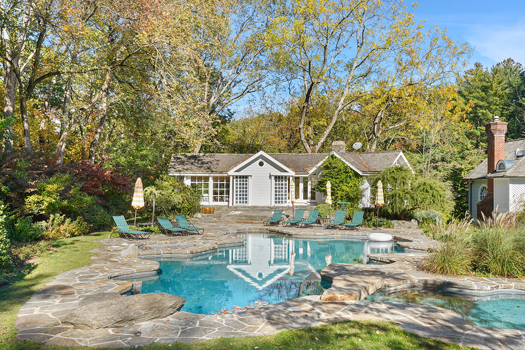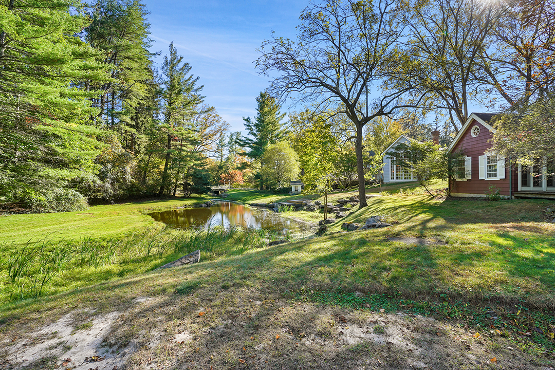 In 2024, world-famous actress and newly-minted talk show host Drew Barrymore listed her Hamptons home. The Wall Street Journal reports that NYC-based celeb was tired of the long drive to the East End and in the mood for a getaway in Westchester County instead. Finding the right place didn’t take long. She soon discovered this charming, pre-revolutionary war-era compound in Harrison, New York on Zillow. Welcoming you with a winding creek, a pond, and multiple enchanting structures, it’s no wonder the 11.8-acre spread attracted Barrymore with ease.