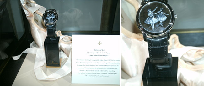 Two Degas-inspired ballerinas dancing across the hand enameled face of a timepiece displayed in a crystal case set the scene for an elegant evening held at the Consulate General of France to welcome Benjamin Millepied, the newly appointed Director of the Paris Opera Ballet.