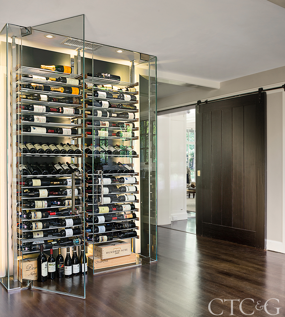 A custom wine fridge anchors one end of the kitchen. Handler, Mollie Rhodes from Deane, and Heritage Vine collaborated on its design and construction.