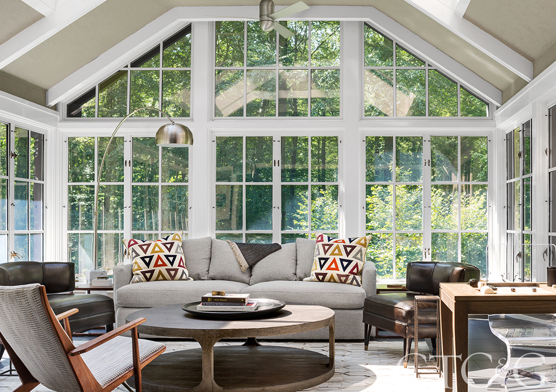 The Handlers were attracted to the Cotswold cottage feel of their new home. Floor-to-ceiling windows on both sides bathe the house in an abundance of light.