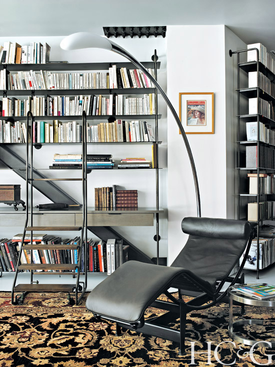 But by paring down and spreading out, the couple benefited from a tremendously increased living space: The new two-story construction left them with a basement, four bedrooms, a library, a dining area, and covered patios. The artful (and art-filled) addition employs a minimalistic perspective, honed by the spare, interlocking angles and recurring triangular theme. More than just a matter of geometrics, the shape determines the way Marie-Ève and Michel look at their surroundings, inside and out. “It’s like an arrow,” she says. “It always points your eye somewhere.”