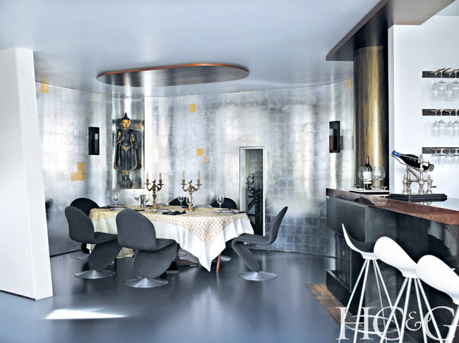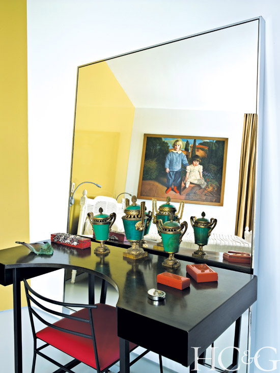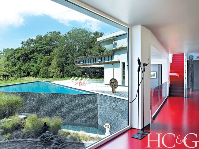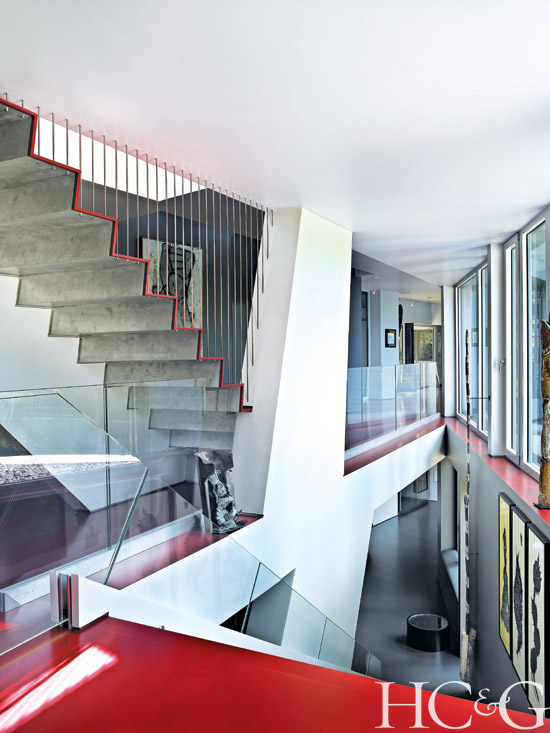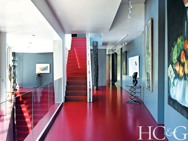 Dramatic artwork necessitated an equally dramatic backdrop. Marie-Ève chose cherry red for the halls, avoiding an art gallery starkness and blanketing the walkways with a sense of warmth. Decorator Tracey Garet, who owns Apsara Interior, helped her with the color palette. “I needed to see how colors worked during different times of the day, as the light changes,” says Marie-Ève. When the house was complete, with each piece of art and decor in place, even Behrooz was moved by the sense of harmony. “An extremely meditative quality took over,” he says.