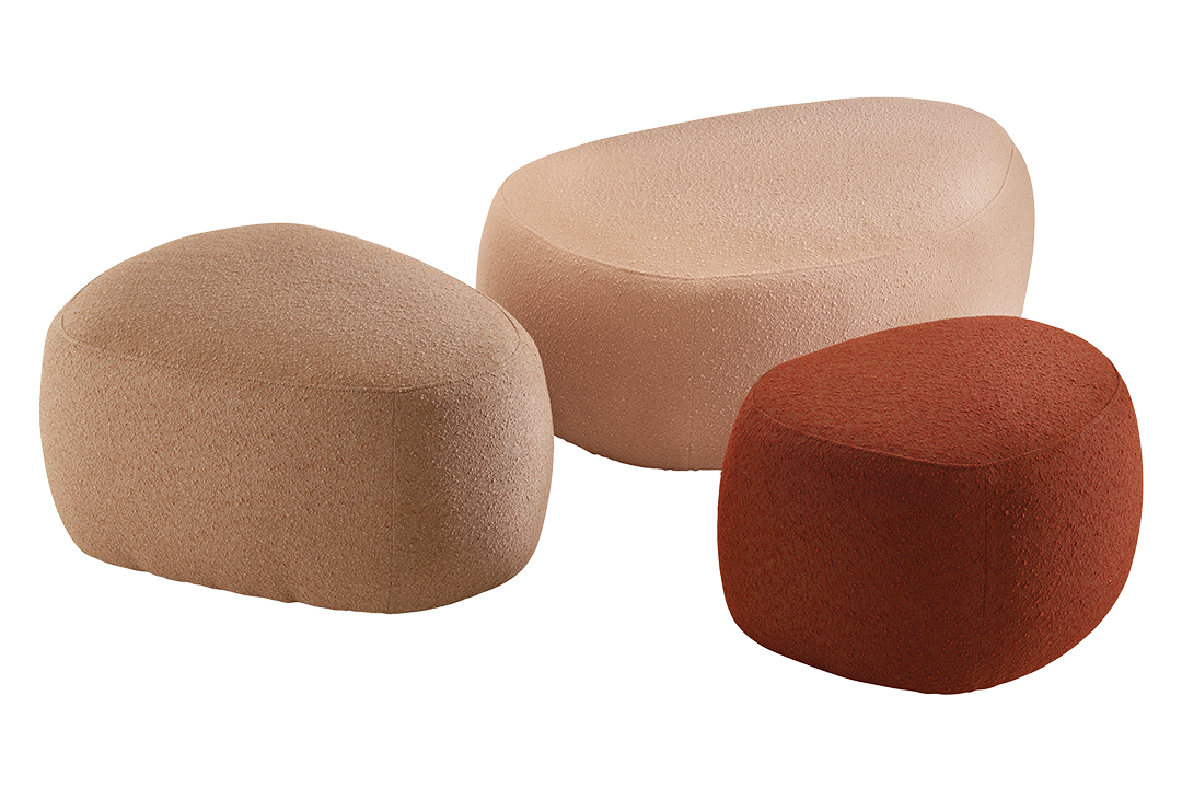 The Asher ottoman ensemble is a versatile, modern accent piece reminiscent of river stones and is ideal as a coffee table, extra seating or a footrest.