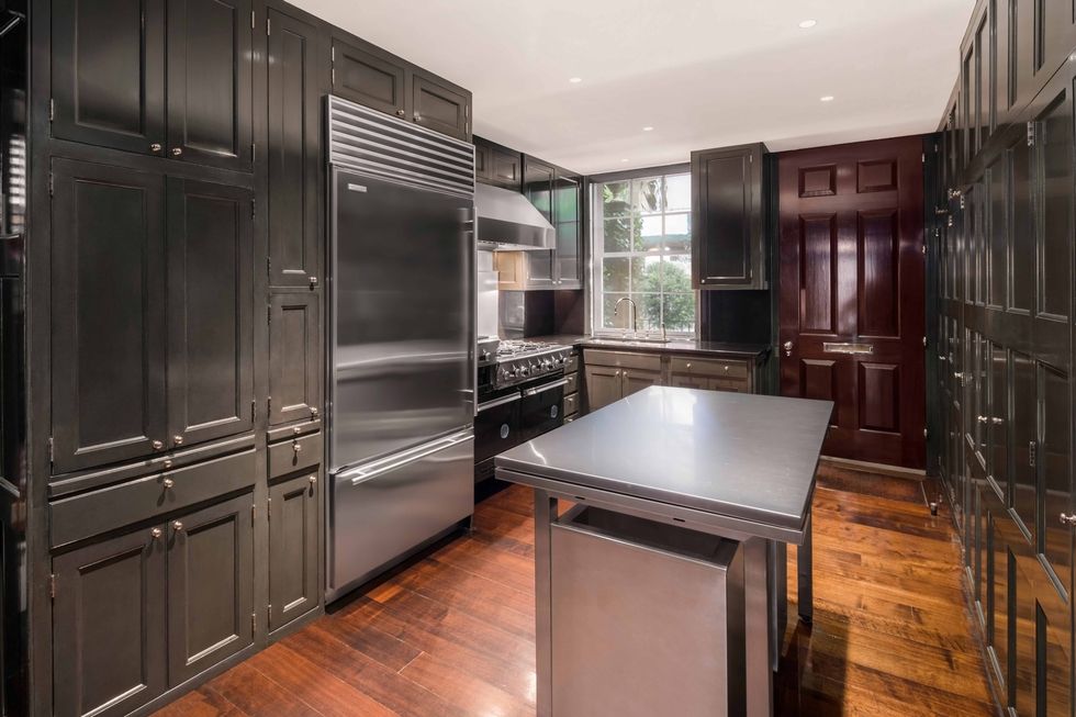 A decade ago, New York architect Daniel Romualdez “extensively restored” the townhouse, embracing original details while simultaneously upgrading the home to modern standards. A chef’s kitchen now boasts appliances from SubZero, Viking, and Miele, and pays homage to the home’s history with a U.S. Range vintage 6-burner stove.
