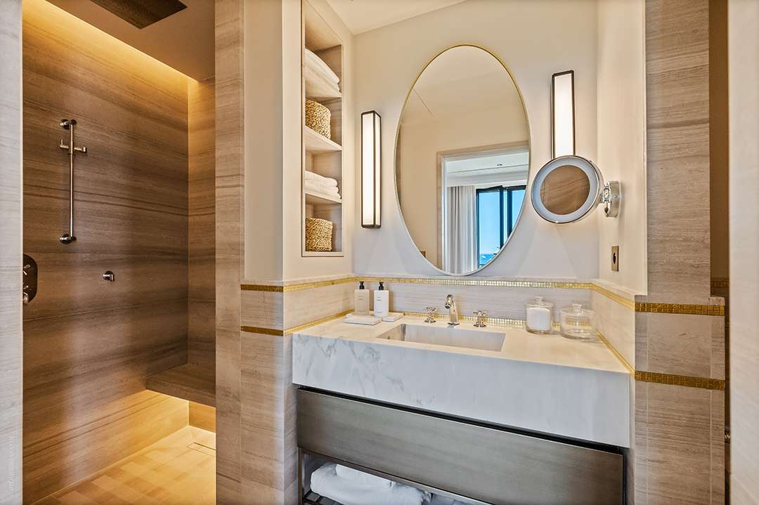 Warm tones and plush textures, subtle gold touches, and luxuriant lighting nod to the golden age of Jazz and the French Riviera while embracing the way we live today. The primary suite’s bathroom is particularly alluring, almost appearing like a 21st-century twist on an Old Hollywood dressing room. The Caudwell team is handling all sales and tours of Le Provençal, which is nearly 40% sold, if you’d like to see this unique model residence in person.