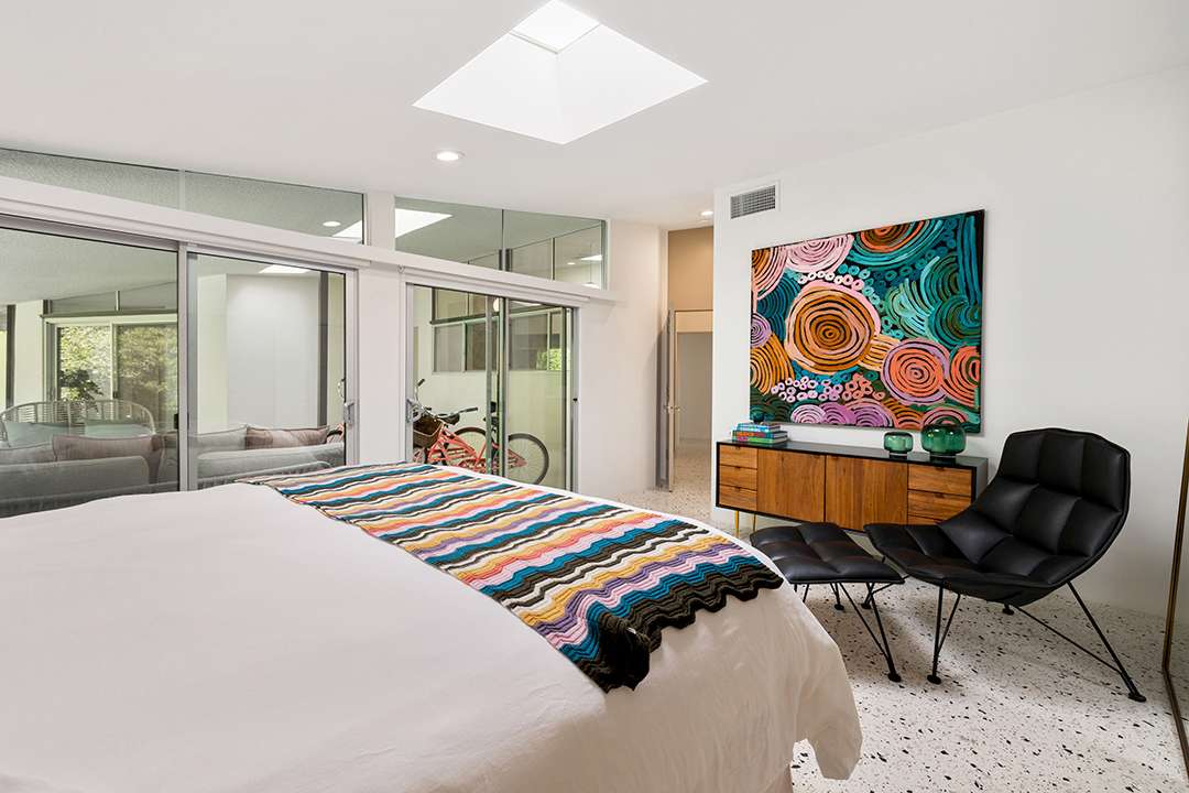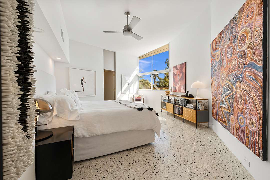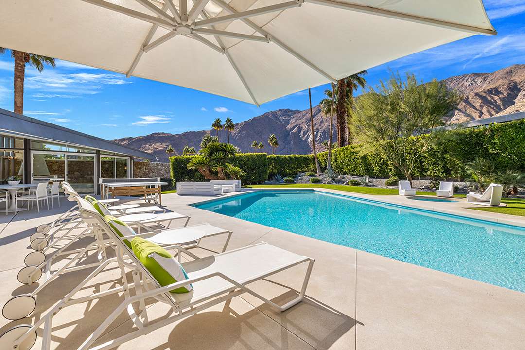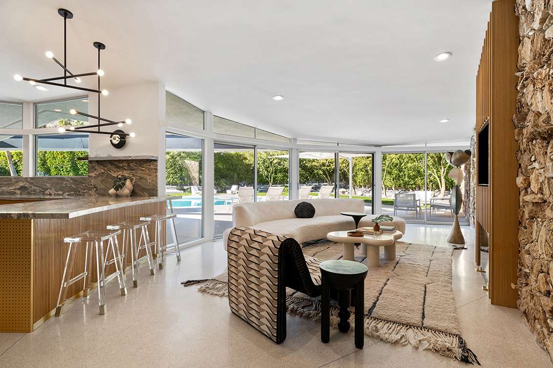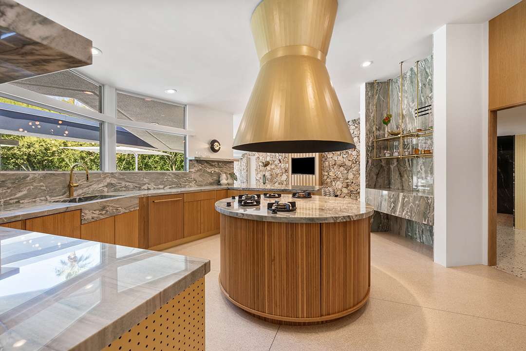 Known as “Honeymoon House,” “The Alexander Residence,” and “The House Of Tomorrow” per a 1962 magazine feature, the spaceship-esque home was originally commissioned by developer Robert Helene Alexander to be his personal residence. Architect William Krisel designed it, creating groovy spherical spaces that cement its place in time and modernism. The circular living room is the unequivocal heart of the home. Exploring on, the dreamy primary suite where Elvis slumbered, fabulous curving kitchen, and relaxing backyard with a large pool and mountain views are other defining aspects.