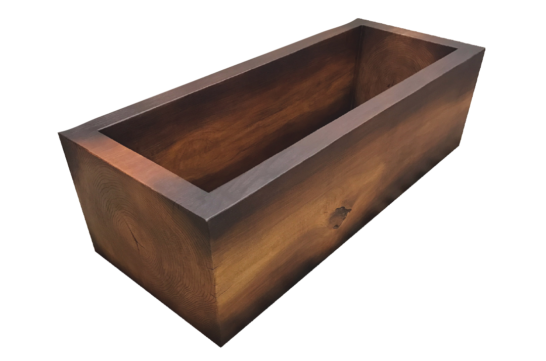 The warmth and characteristics of wood are re-created in the engineered tub from JM-Lifestyles cast in a reinforced composite concrete. Through Bender, Norwalk.