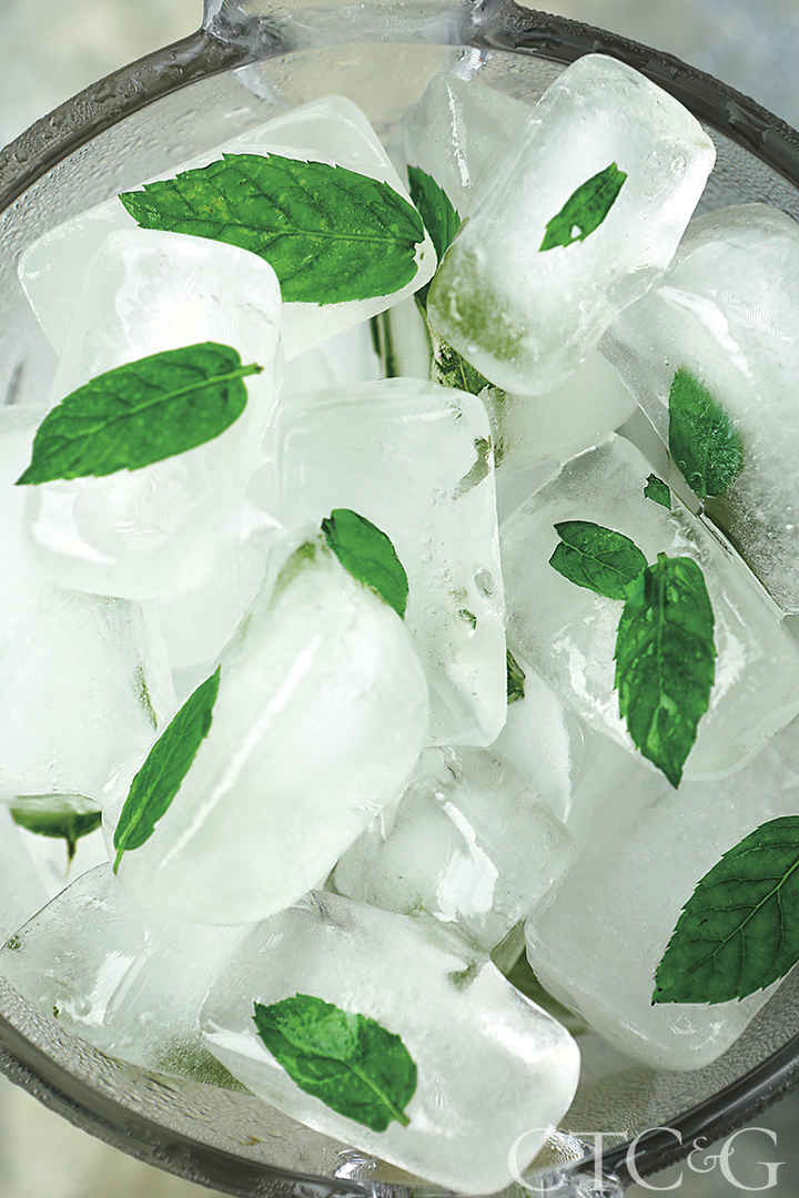 Buchanan loves to bring in color and pattern wherever possible—even in the ice cubes.