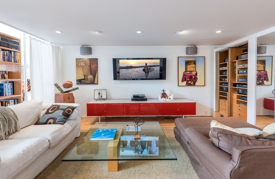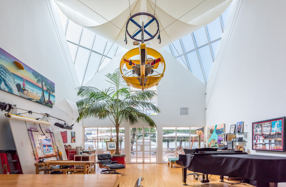 The contemporary home is located off Venice Beach and spans about 3,000 square feet. Douglas Elliman’s Josh Altman, who shares the listing with colleagues Matt Altman and Juliette Hohnen, told Mansion Global that it features massive triangular skylights and 30’ ceilings in the great room. After Meadows purchased the house, he built a mezzanine that overlooks the great room and a fireman’s pole that accesses the first floor.