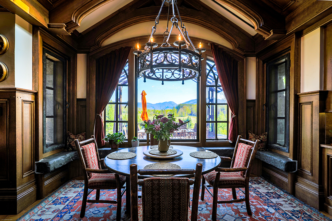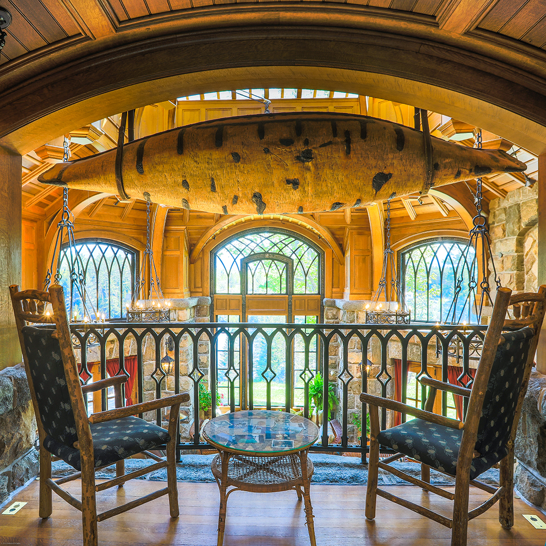 From the outside, it’s easy to see the natural, rustic setting was taken into account when creating the stone mansion. Sat against the backdrop of the West Branch of the Ausable River and Southern High Peaks, the spaces are positioned to capture the beauty of all seasons.