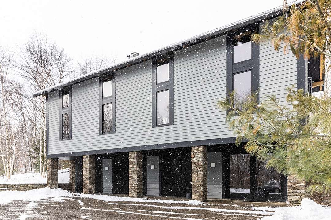 High ceilings soar in the main house, which houses a beautiful kitchen and all the modern conveniences of today.Walls of windows make it feel like an at-home snow globe during the winter, but wood-burning fireplaces have no trouble with warming the place up. Downstairs sits a full fitness studio, but if working out at home isn’t your choice, there are miles of hiking trails outdoors to explore the natural land.