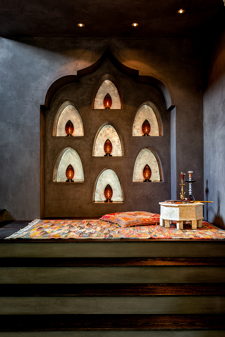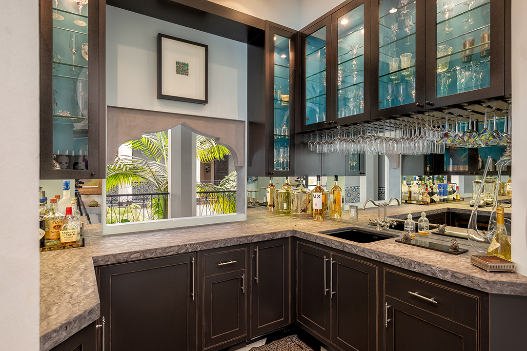 Potential buyers will be immersed in an ultra-luxurious lifestyle upon entering the exotic home filled decadent Moroccan details and relaxing amenities. The 12,927-square-foot mansion includes two spas, one indoors and the other outside, to meet any whim. A true resort experience, the interior spa features a plush spa bed, fireplace, massage tables, and a steam room and bath.
