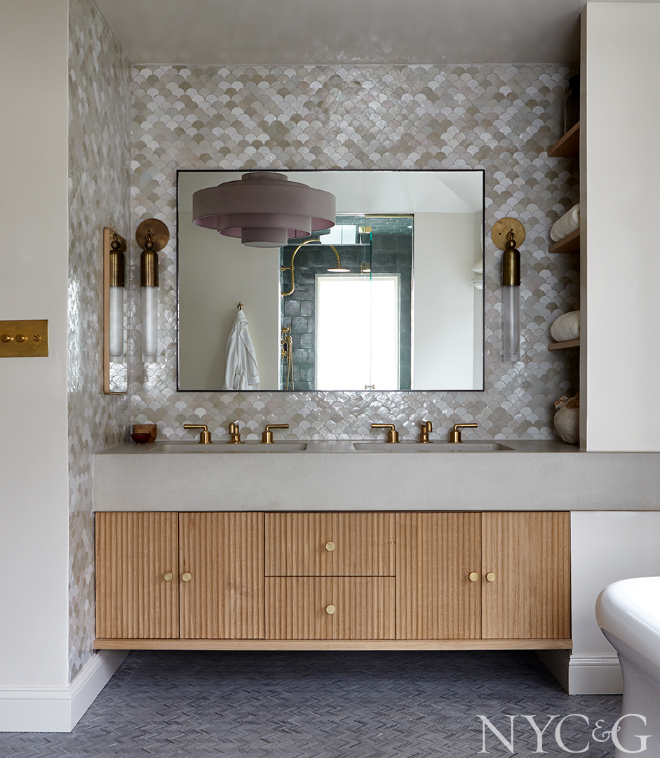 Lexi Tallisman’s clients had been living in a circa-1990s spec house in Sleepy Hollow for about a year. They loved the layout, the location, and the area’s great schools, but “all the finishes were very model-home-like,” says Tallisman, founder of the SoHo-based interior design firm Greyscale Interiors. “And I mean that in the worst of ways.” Think yellowing Venetian plaster walls, giant pillars, shiny brass big-box-store hardware, and clunky millwork. A renovation was in order, with Tallisman’s clients living on-site through a two-phase project that occurred over the course of five years. “We stopped just short of knocking down all the walls.”