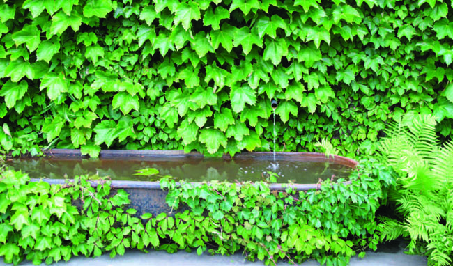 Abundant Beauty | An English cast-iron trough enveloped in Boston ivy.