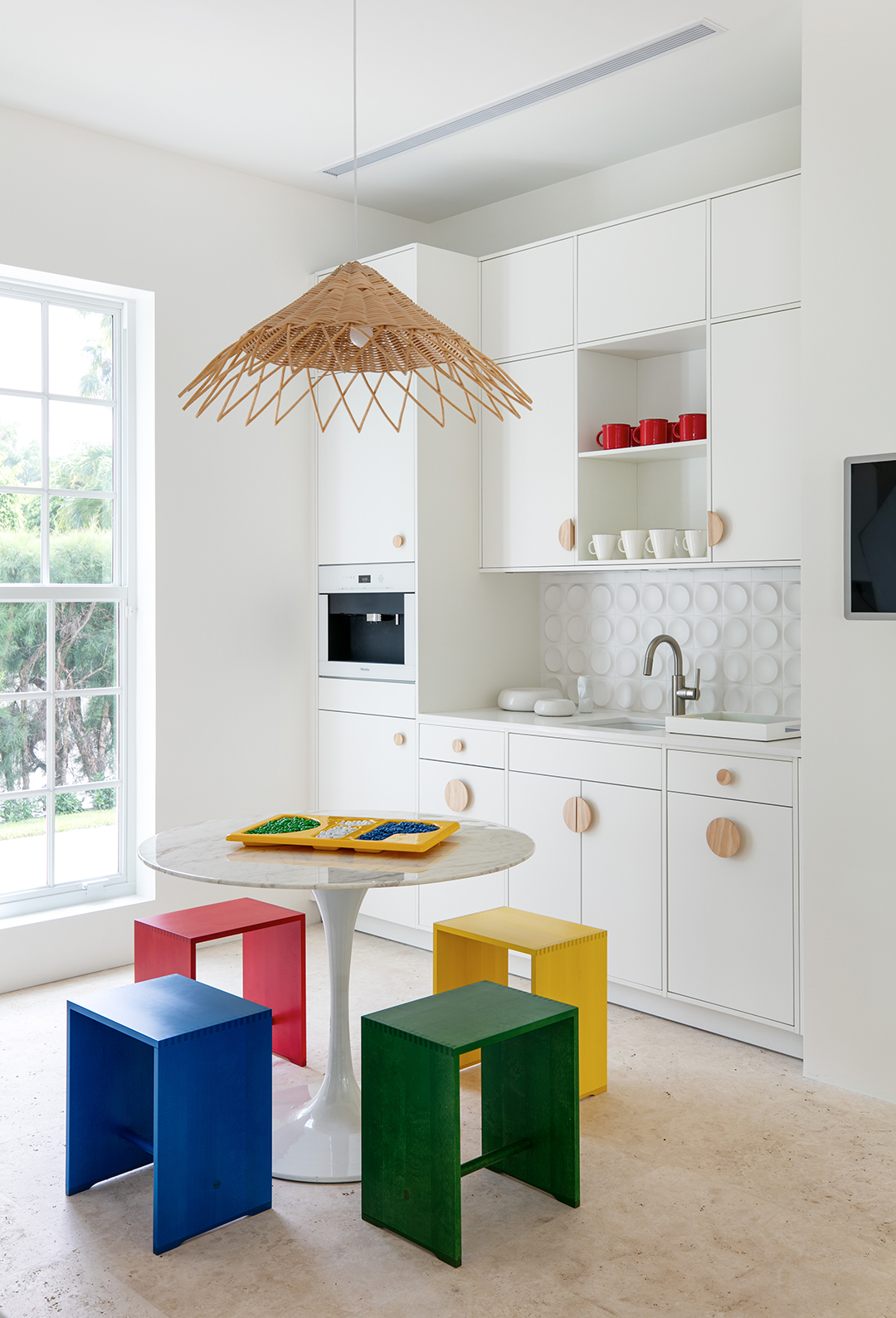 New York-based minimalistic fashion icon Lisa Perry has taken on a new pursuit with her creative ideas and has entered the interior design world, launching Lisa Perry Homes. Now completing her first project, Perry has listed the renovated Palm Beach Island abode with contemporary, spunky style for just under $11 million.Although it was built in 1980 and has mostly kept its original floorplan, the property has really been brought to life with its artful furnishings. Perry left the home’s clean white walls, but chose to bring in pops of color to create upbeat spaces. Some walls have been removed and large glass windows added to create an airier home filled with light.Color blocking and shape play were huge themes in the house with Perry stating, “It is safe to say that circles and dots are a running theme throughout my homes and my life. Each time I see them the positive impact is immediate, and they make me smile.” Most of the furnishings are from Perry’s travels between France and the US.The home is made up of six bedrooms and six and a half baths across 5,686-square-feet of interior space set close enough to the water that ocean air can be felt from the front door.The fashion-forward listing is held by Burt Minkoff of Douglas Elliman.
