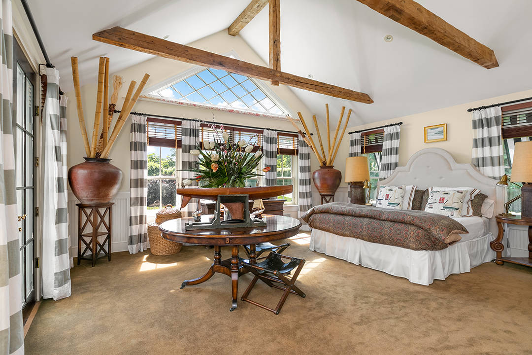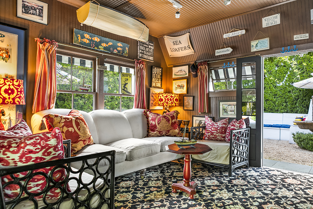 A Water Mill home owned by former J. Crew President Jeffrey Pfiefle and featured in the June 2014 issue of HC&G has been listed for $5.9 million. The eclectically decorated home, which Pfiefle has owned with partner David Granville for 10 years, is also available to rent from July to Labor Day, but the lengthy stay will put you out $200,000. Granville is one of the listing agents for the property, making it all the more personal.Purchased by the couple in 2008 for $4.3 million, the home features a mix of sensibilities. The original part of the structure dates to the 1700s, while updates have added space with entire new wings. As it stands today, the 5,000-square-foot, shingle-style abode contains seven bedrooms, eight bathrooms, and a first-floor master suite. Contributing to the home’s sense of character are cathedral ceilings in the living room and an outdoor, retro tiki bar converted from an old shed. The exterior living space also boasts a pool, pool house, gazebo, and an apple orchard.For more information on this stunning home, contact listing agents Mala Sander and David Granville of The Corcoran Group.