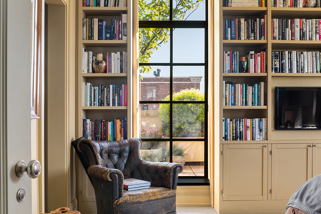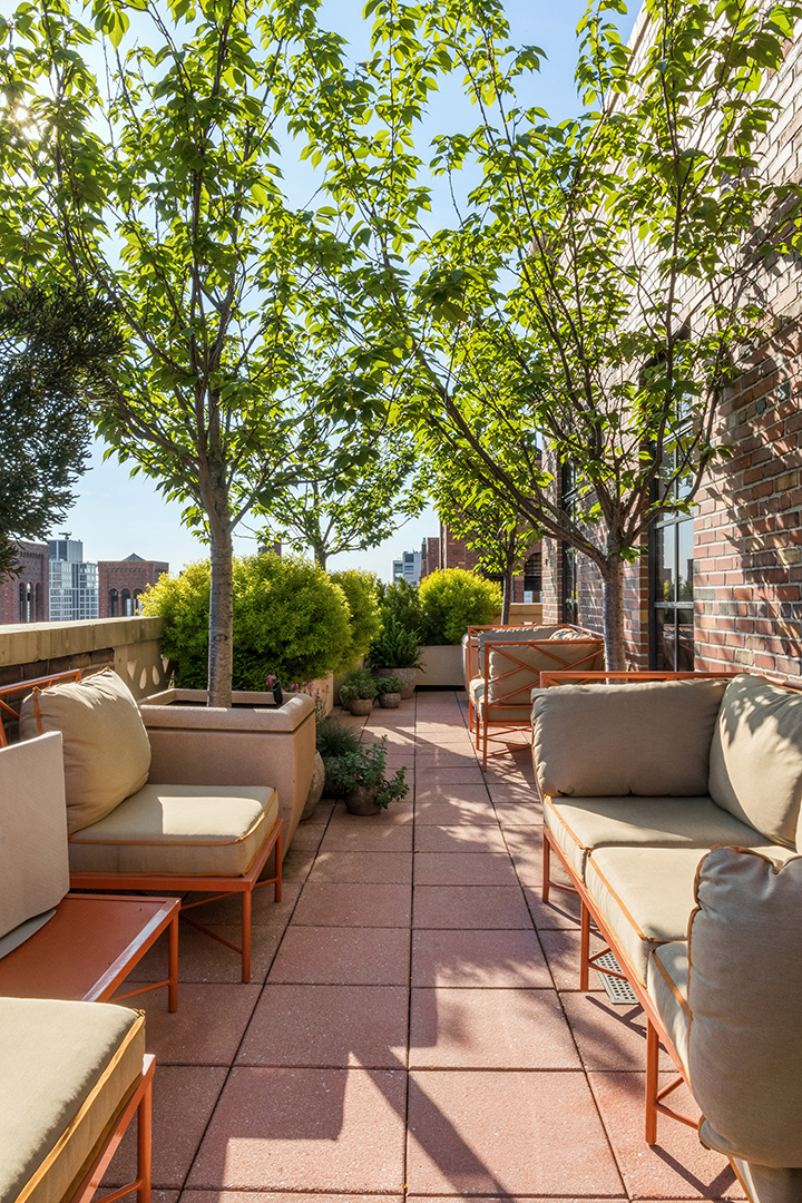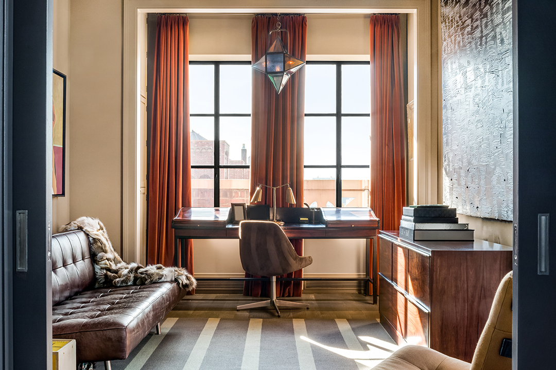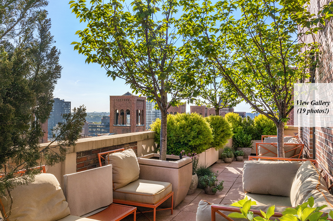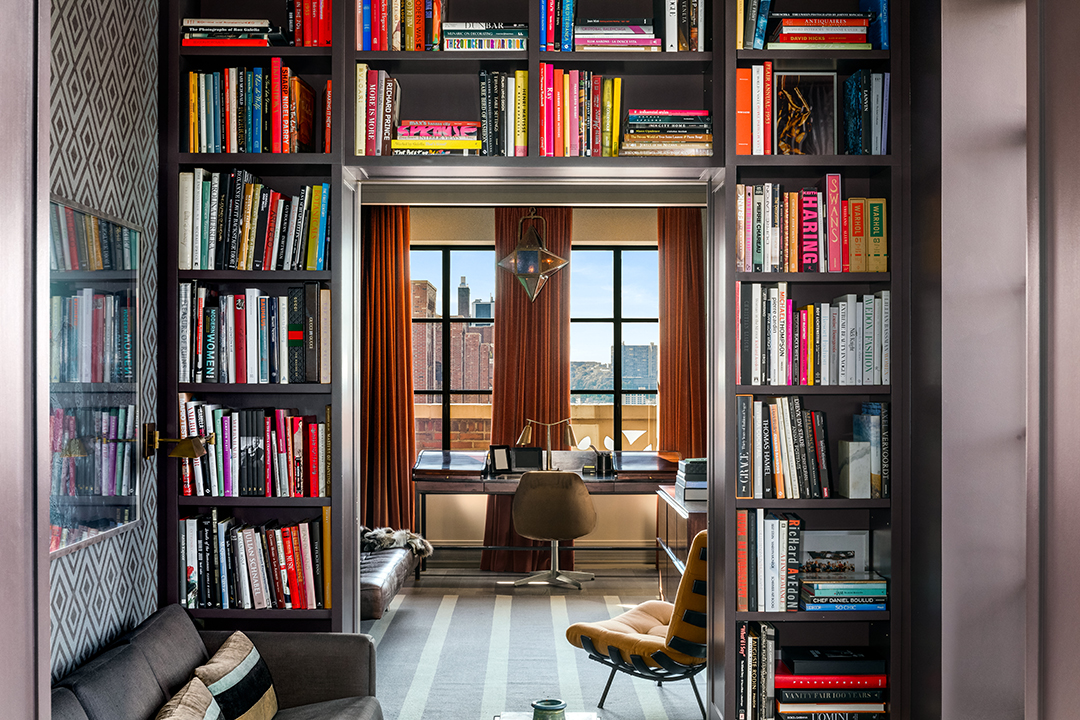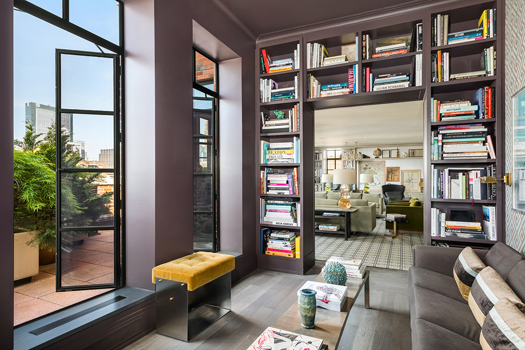At the Chelsea penthouse of former Barneys CEO, Mark Lee, and husband Ed Filipowski, the co-chairman of fashion PR firm KCD, impeccable interiors were never a question. It’s clear that the pair put thought into every furnishing, paint color, and surface material, which may be what snags them a buyer now that the apartment is listed for $8.4 million.Located in London Terrace Towers, a landmarked building on West 24th Street, the 2-bedroom, 2.5-bath penthouse is a haven of natural light and style. While every room is chic and put together, an eclectic collection of art is masterfully clustered in the living room, giving the space personality. In the library, purple built-in shelves packed with books also show that this fashion-forward abode is first and foremost a home, filled with items the owners cherish. This stylish yet livable balance is continued throughout the residence and looks effortless, but is no easy feat.Most impressive, however, is the wraparound terrace that offers 360-degree views. The luxurious oasis is exquisitely landscaped and outfitted with lounge furniture, making it the perfect spot for day or night outdoor entertaining.Jordan Shea, Fredrik Eklund, and John Gomes of Douglas Elliman have the fashion power couple’s listing.To keep up with the latest real estate news no matter where you are, follow dailyDEEDs on Instagram!