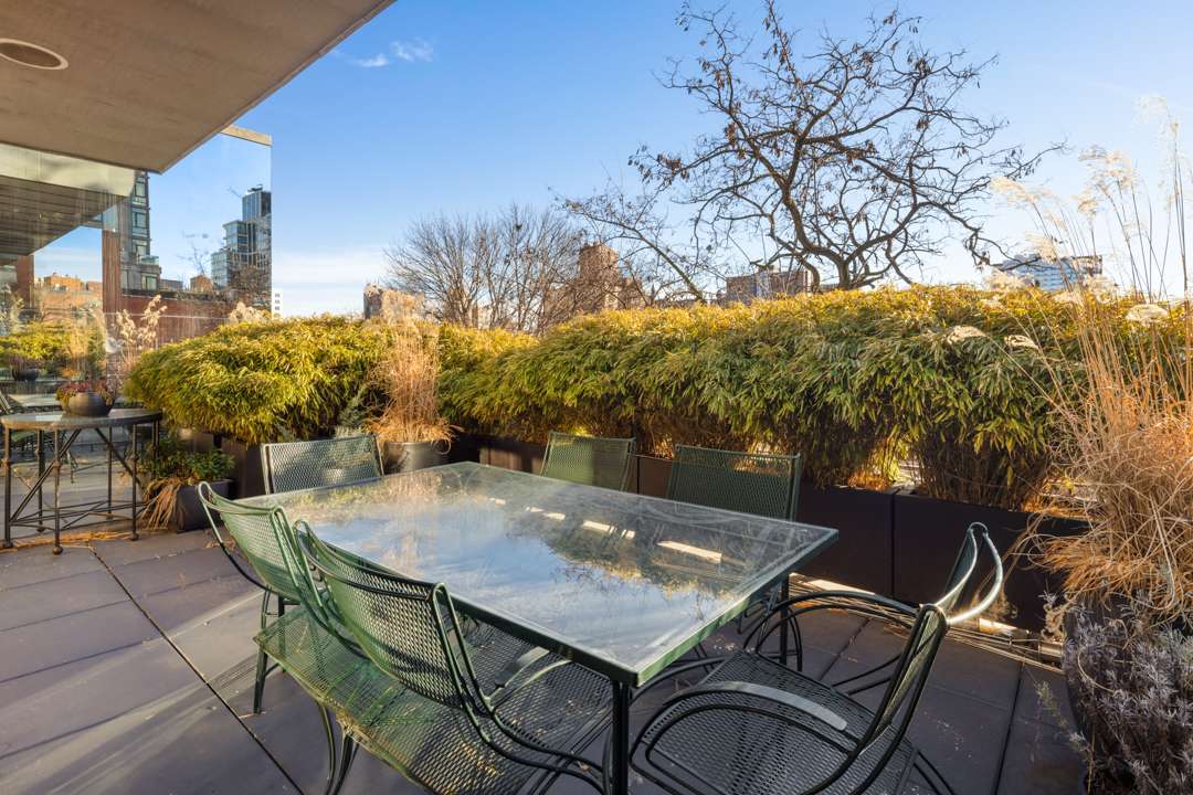 The residence is 22-feet-wide and spans 7,500 square feet, with four bedrooms, five full bathrooms, and three half bathrooms. The primary suite occupies the entire fifth floor, and is complete with a wood-burning fireplace, dressing room, and two full bathrooms. The home also boasts two expansive roof terraces, primed for urban alfresco entertaining.