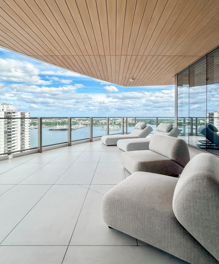 This posh new tower sits on South Flagler Drive, right next to the Lake Worth Lagoon. It was designed by Arquitectonica Architecture and designer Jean-Louis Deniot, with a total of 41 units spanning 25 floors. Building amenities include doormen and security, house cars, electric vehicle charging stations, a parking garage, pool deck with an outdoor dining area, private dining room, card room, his-and-hers spas with steam rooms and saunas, golf simulators, and concierge services.