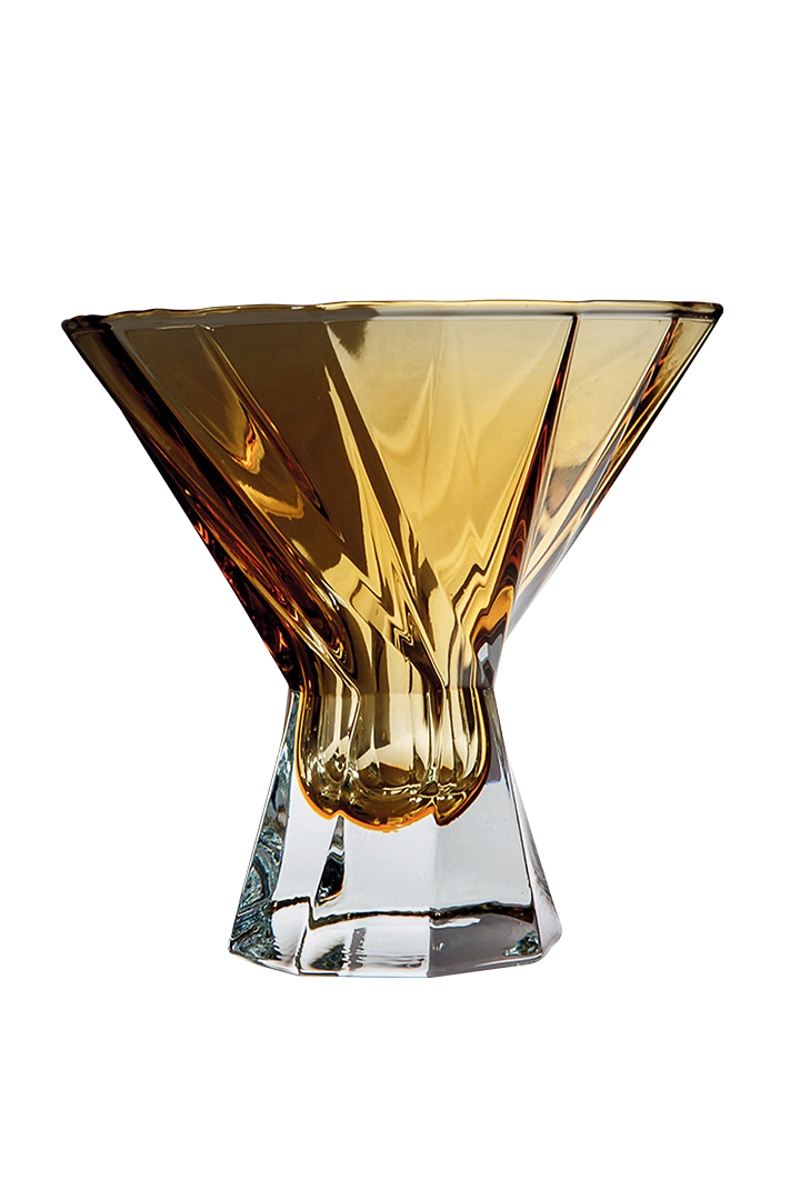 The Ghost Martini glass is intentionally crafted as one continuous body of glass, with the seamless integration of the base into the overall body of the design. The shape attempts to reverse the concept of the delicate nature of a classic martini glass and provide a robust and boisterous alternative.