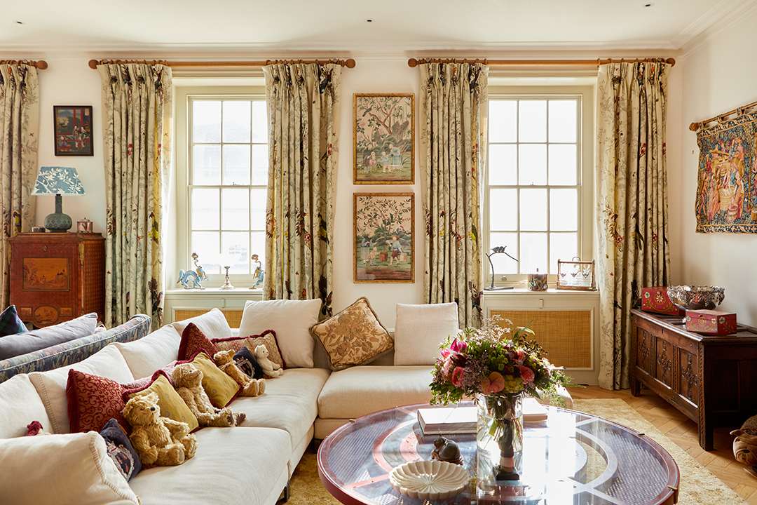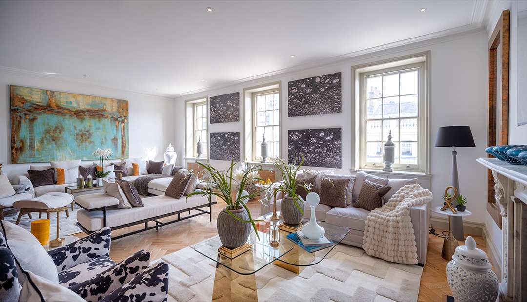 Set in Belgravia, the duplex penthouse is a vision of sunshine, high ceilings, and pops of color with a serene rooftop terrace crowning it all. McVie purchased the splendid spread after rejoining Fleetwood Mac in 2014 as she was pulled to London more often from her Grade II manor in Kent. Next, she renovated it to make it a true refuge.