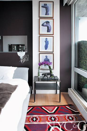 Today Giugni’s guests enter his 16th-floor Central Park North aerie amid walls sheathed in a deep chocolaty plum. All the better to set off the brilliant view from the open living area, which has vistas across the length of the park down to One World Trade Center at Manhattan’s southern tip. The apartment is an enfilade—a procession of rooms, each with its own balcony overlooking the Harlem Meer. “This way I get an amazing park and greenery, but I don’t have to pay for it—or tend it!” he says with a laugh. From his vantage point, the park strikes a particularly personal note. “The Meer reminds me of the gardens of the Île St. Louis—surrounded by water, with lots of weeping willows, too. Even the lampposts are similar, giving off a mysterious and beautiful light at night. And the Conservatory Garden at Fifth Avenue and 105th Street makes you feel as if you were transported to the Jardins des Tuileries.”