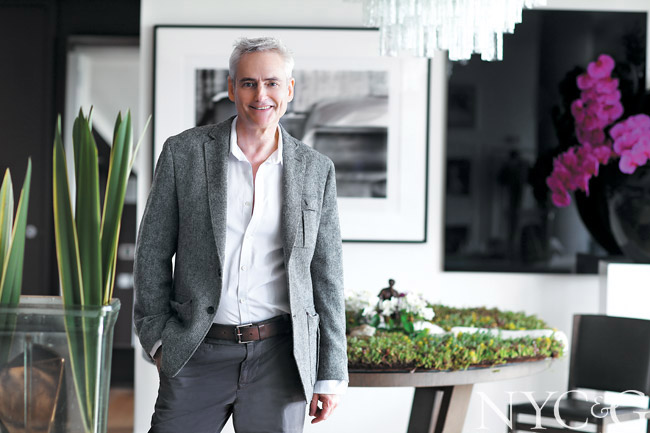 One day about seven years ago, Olivier Giugni and a friend attended a gospel performance in Harlem and decided to take a walk around the neighborhood afterward. Giugni, a floral designer who has been the creative director and owner of L’Olivier Floral Atelier for more than two decades, was impressed with the European scale of the boulevards and the proximity to Central Park. When the native Frenchman spied a glass apartment tower going up at the park’s northern edge, he thought, Why not ask? “The secret is not to be afraid to be adventurous,” he says. “So immediately I put my apartment on 14th Street on the market. It was a fast sell—everything downtown sells like a croissant!”